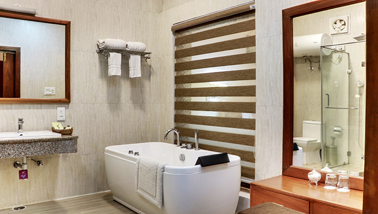 “These 600 sq.ft large, well-appointed rooms feature elegant furniture, premium fittings and a spacious layout filled with natural light.”