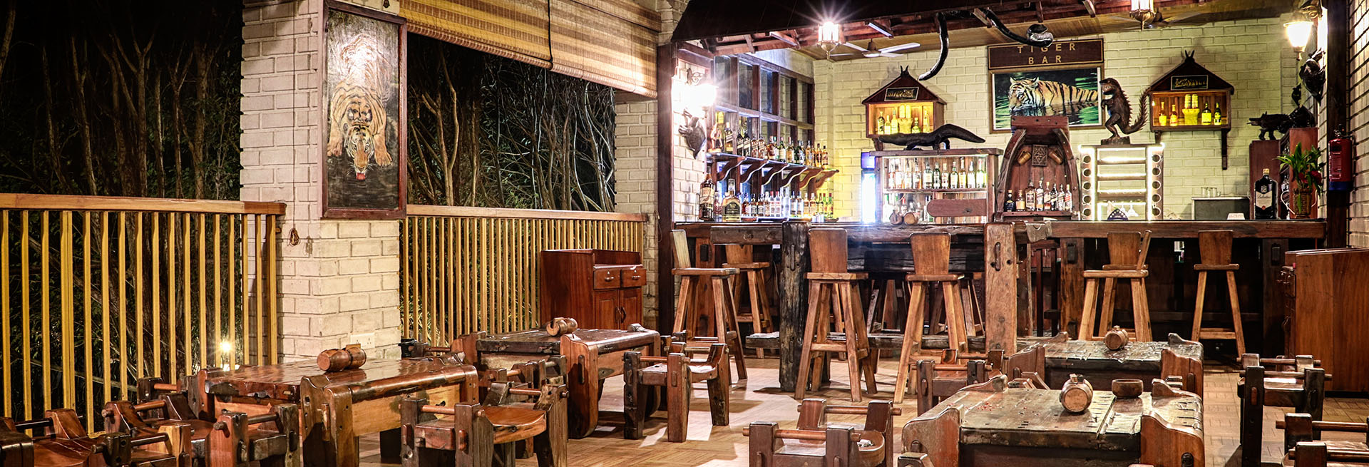 Come for a refreshing cocktail in our vibrant tiger bar and stay for the delectable bar bites and enticing entrees. The casual yet lively ambience with a panoramic jungle view is accentuated by the quirky and rustic interiors that reflect warmth and hospitality like no other. Binge on a select range of spirits, wines, cocktails and brews all evening, paired with scrumptious delights.